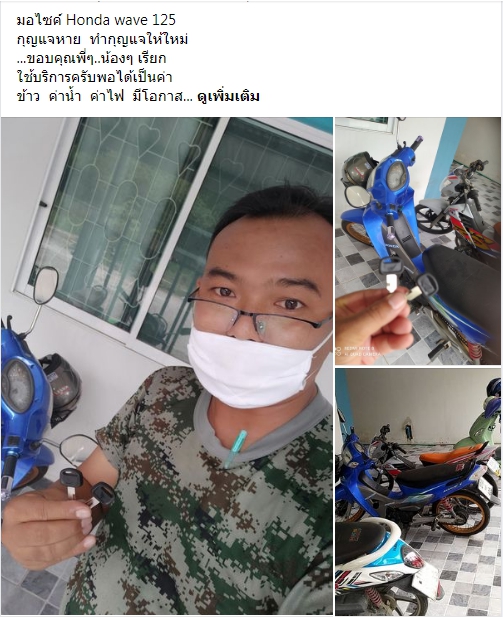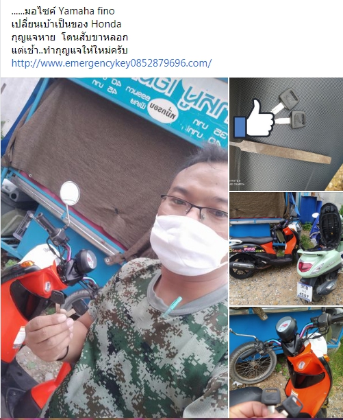 ลูกค้าทำกุญแจมอไซค์หาย | บริการนอกสถานที่ ทำกุญแจให้ใหม่ |